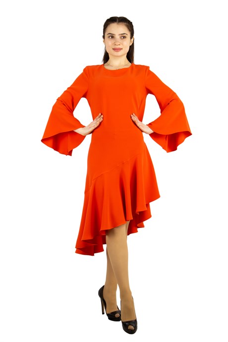 Asymmetrical Dress With Ruffle Hem - Orange