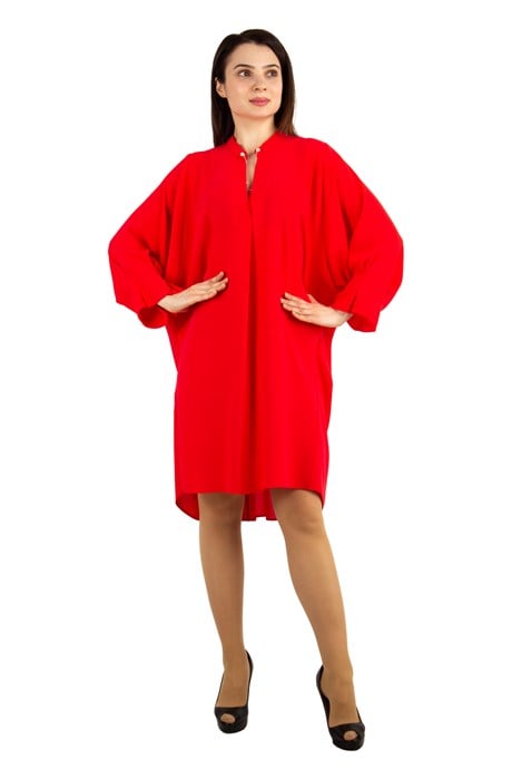Brooch Neck Pleated Elastic Back Big Size Dress - Red