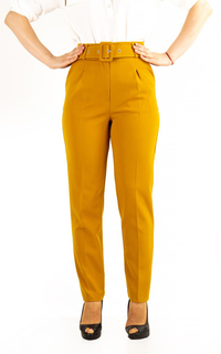 Pantalon De Bureau Formel Décontracté Pour Pantalons Pour Dames Avec Ceinture Assortie - Moutarde