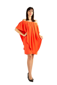 Robe Grande Taille Cape Plissée Noeud Papillon Au Dos - Orange