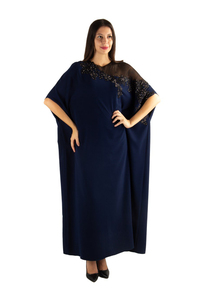 Robe Longue Grande Taille À Manches Chauve-Souris Avec Détail En Dentelle Et Tulle - Bleu Marine