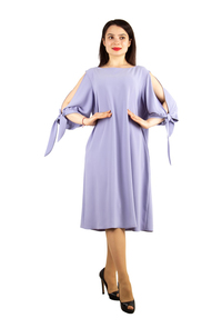 Robe Grande Taille À Èpaules Dénudées Et Manches Nouées - Lilas