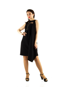 Draped Dress With Tulle Detail - Black
