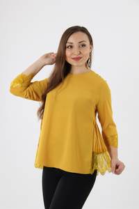 Blouse Grande Taille Détail Plissé En Dentelle - Moutarde