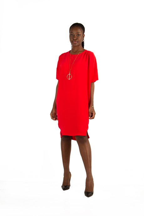 Plain Elegant Midi Short Sleeve Big Size Dress - Red