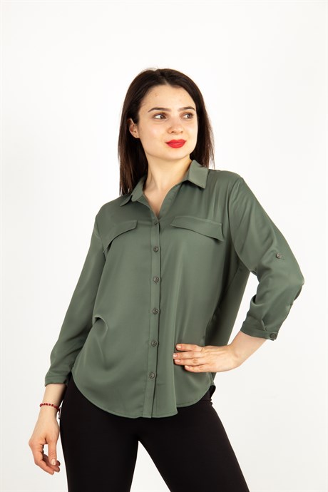 Silk Looking Classic Blouse - Khaki