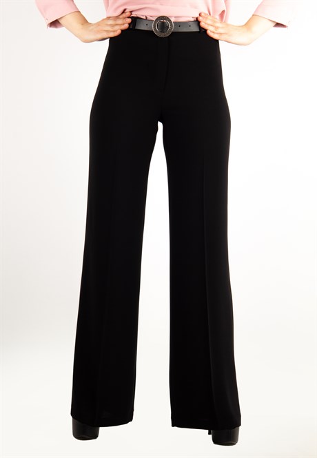 Wide Leg Pant With Belt - Black