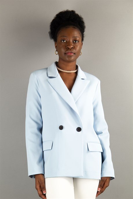 Women Front Button Loose Blazer Jacket - Baby Blue
