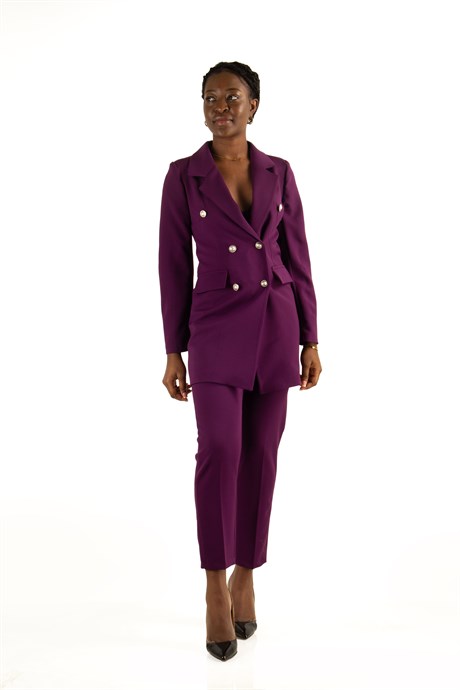 Women's Blazer Buttoned Suit - Maroon